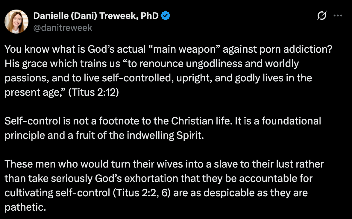 I formerly struggled with porn. It put undue pressure on my wife, which was destroying both her and our relationship. Learning to heal from that, walking in accountability, and growing in grace set me free to have an incredibly blessed marriage.