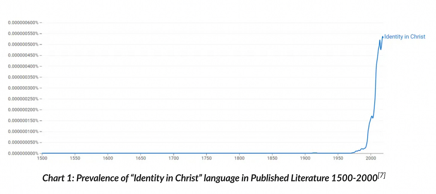 Searching the words “identity in Christ” in every published work since the Reformation immediately reveals that such language is almost exclusively a phenomenon of the late 20th century.